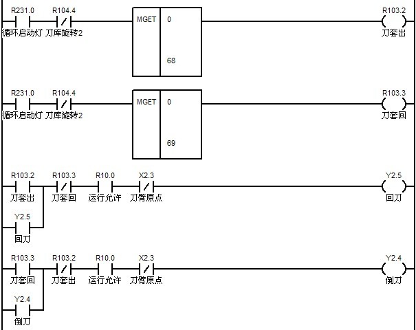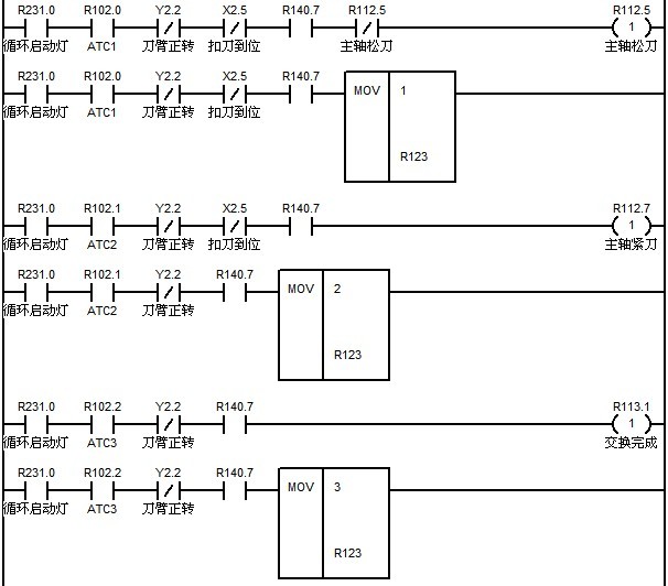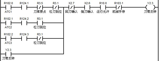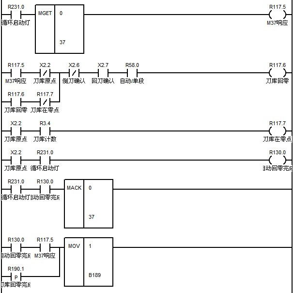 M37:刀庫正轉(zhuǎn),直到碰到刀庫原點(diǎn)信號停止轉(zhuǎn)動。設(shè)置該時(shí)刻的刀位號為1號刀位。
