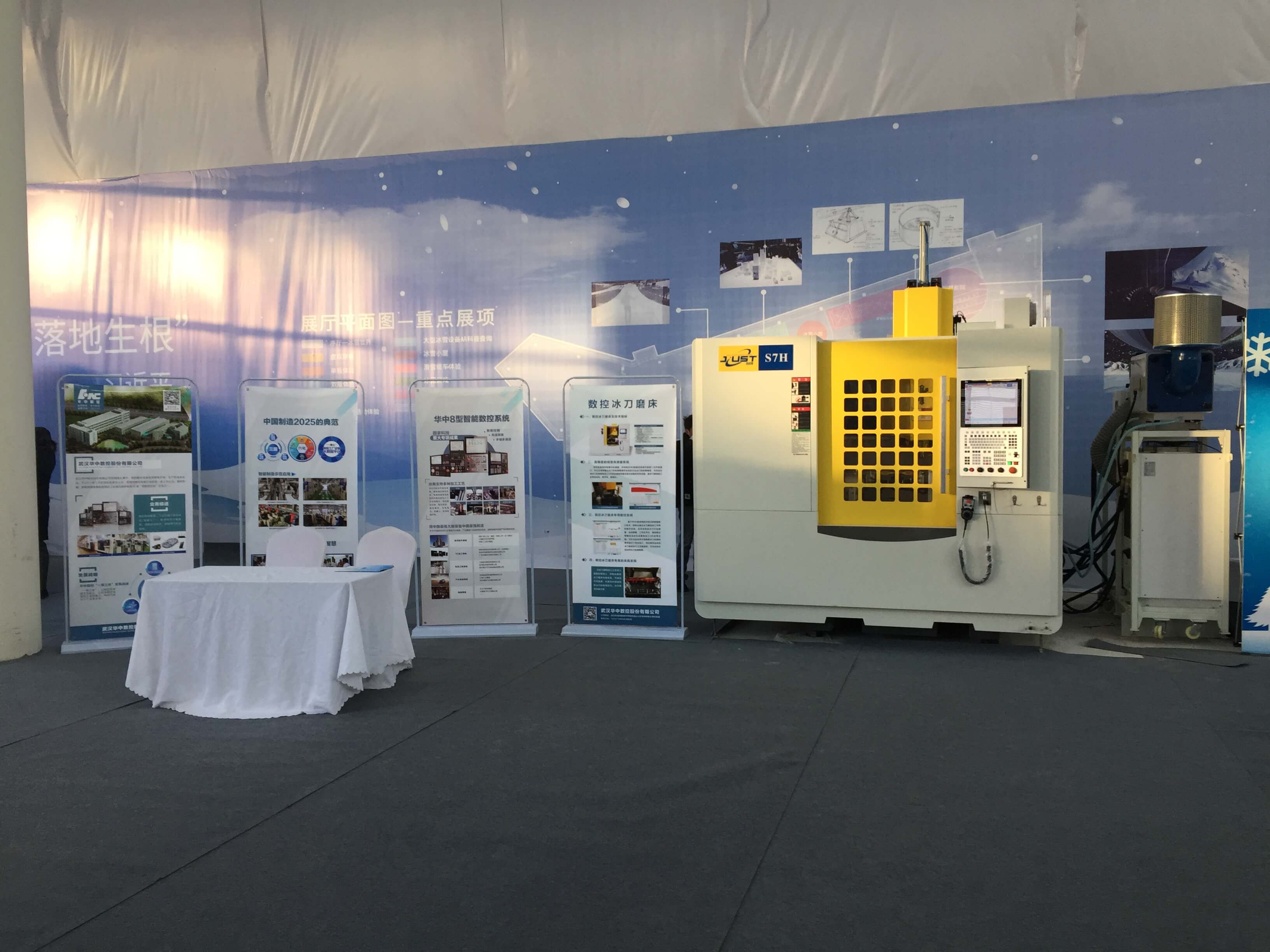 12月21-23日,河北張家口冰雪產業博覽會成功舉行。博覽會以“聚焦冬奧,共贏未來”為主題,設有主題展覽、主旨演講、權威發布、項目推介、合作洽談等八大版塊。博覽會集中展示了習近平總書記“推動冰雪運動和冰雪產業在張家口落地生根”重要指示精神具體實踐成果,帶觀眾近距離了解和體驗冰雪運動裝備發展的新技術、新產品。工業和信息化部副部長辛國斌,北京冬奧組委物流部部長李燕凌,北京市經濟和信息化局副局長崔旭龍,河北省副省長徐建培等領導及專家出席本次博覽會。武漢華中數控股份有限公司(以下簡稱華中數控)與江西佳時特數控技術有限公司聯合研制成功的數控冰刀磨床亮相本次博覽會,受到與會領導和嘉賓的高度關注。華中數控董事長陳吉紅應邀參加本次博覽會,并做專題匯報。