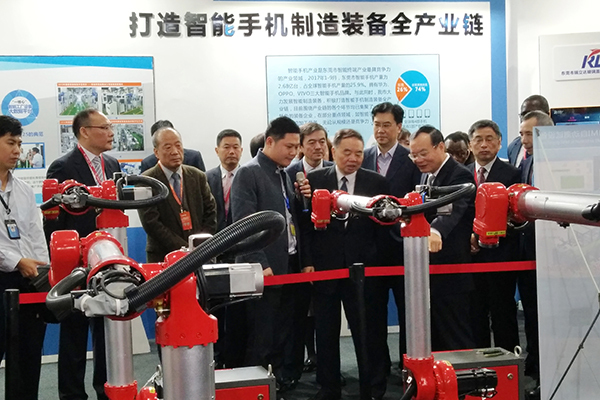?▼中國工程院院長周濟、廣東省副省長袁寶成一行參觀華數(shù)新一代HSR-BR6雙旋機器人