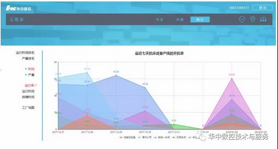 ? ? ? 目前,華中數控已在全國部署iNC Cloud云管家服務,通過“云管家”app和web網頁,可實時查看車間每條生產線中機床的當前運行狀態,記錄了每個機床的今日產量,為用戶提供車間、機床相關利用率、開機率、運行率、利用率、加工件數和報警次數等統計報表,用戶可依據機床使用率等數據,合理排序或調整每臺機床加工零件的工序,可大幅度提高產品加工效率,節約人力、物力資源。