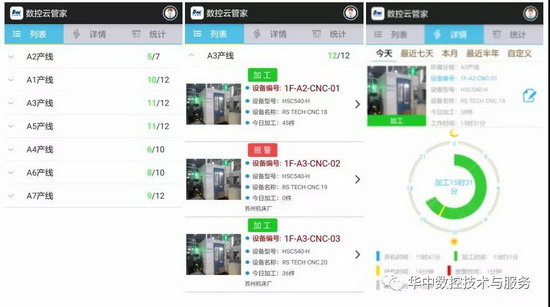 ? ? ? 華中數控云管家在蘇州勝利精密智能制造車間全面部署,iNC Cloud通過對機床7×24小時不間斷采集到的數據進行統計和分析,形成應用示范。