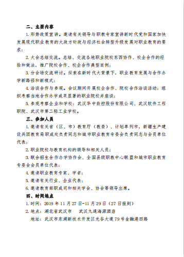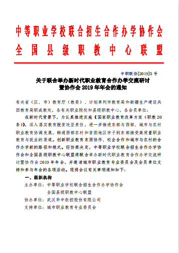 關于聯合舉辦新時代職業教育合作辦學交流研討暨協作會 2019 年年會的通知
